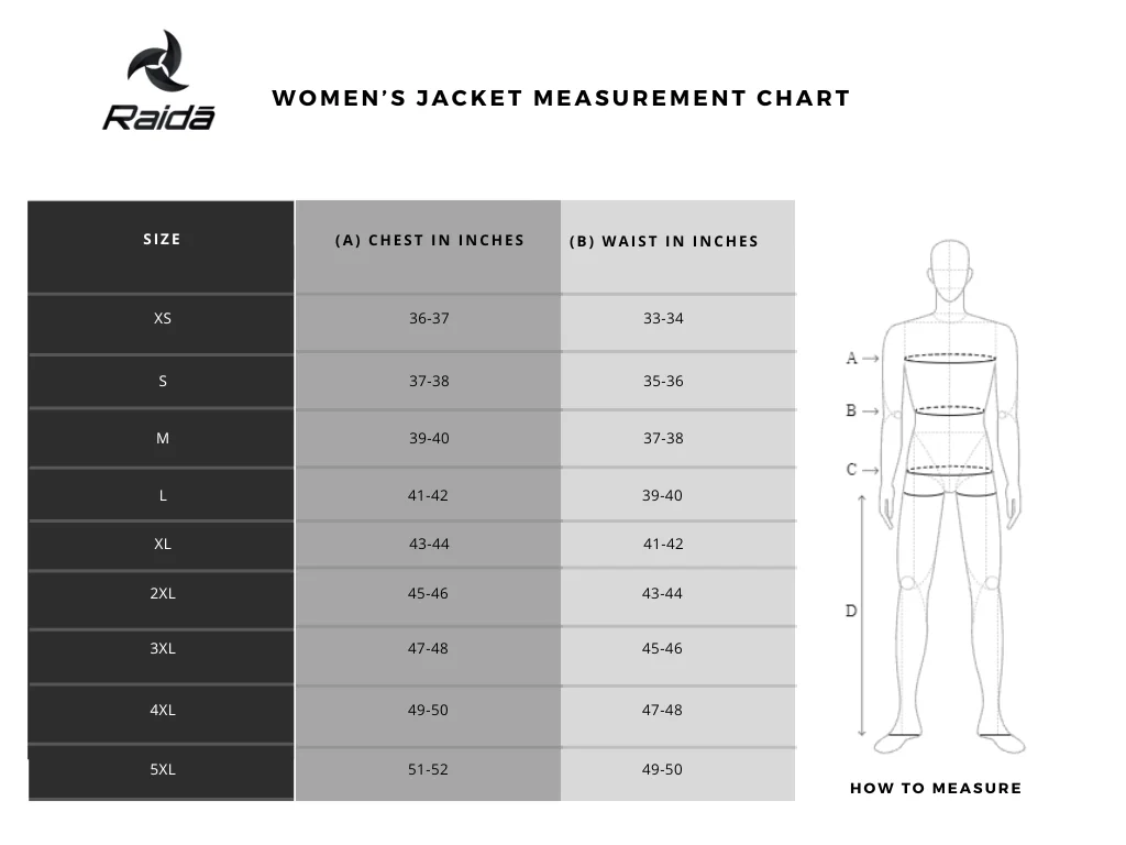 All Raida Riding Jackets and Pants are covered under a 1-year limited warranty from the date of purchase. This warranty applies strictly to manufacturing defects in materials or workmanship.