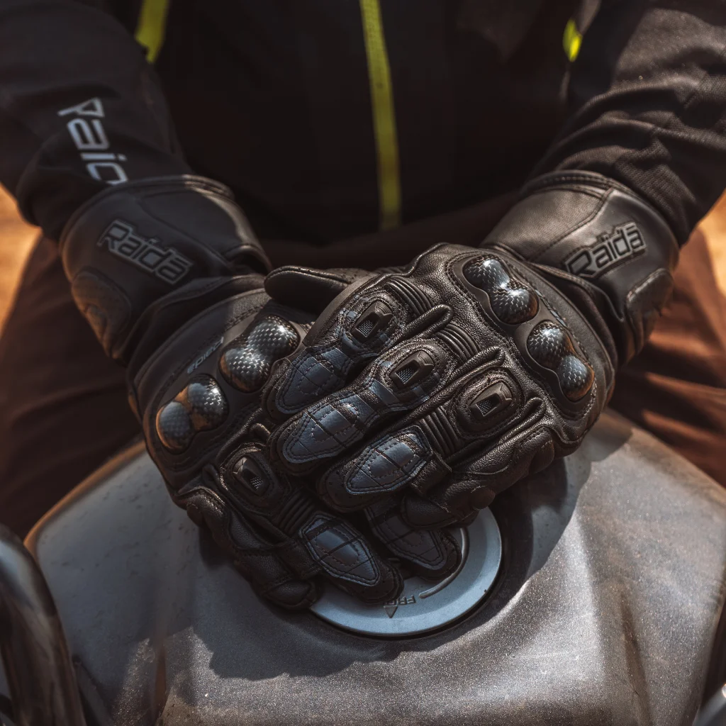 Raida® Aeroprix is a full gauntlet riding glove that features Carbon Fibre Knuckle & Finger Protector specially designed for Everyday ride. In addition to CE Certified Impacton® Visco Elastan Foam at the wrist, It also comes with Knox® Palm Sliders for added safety. Inspired by the track, Raida® Aeroprix Gloves are tailored for Any & Every Day Ride.